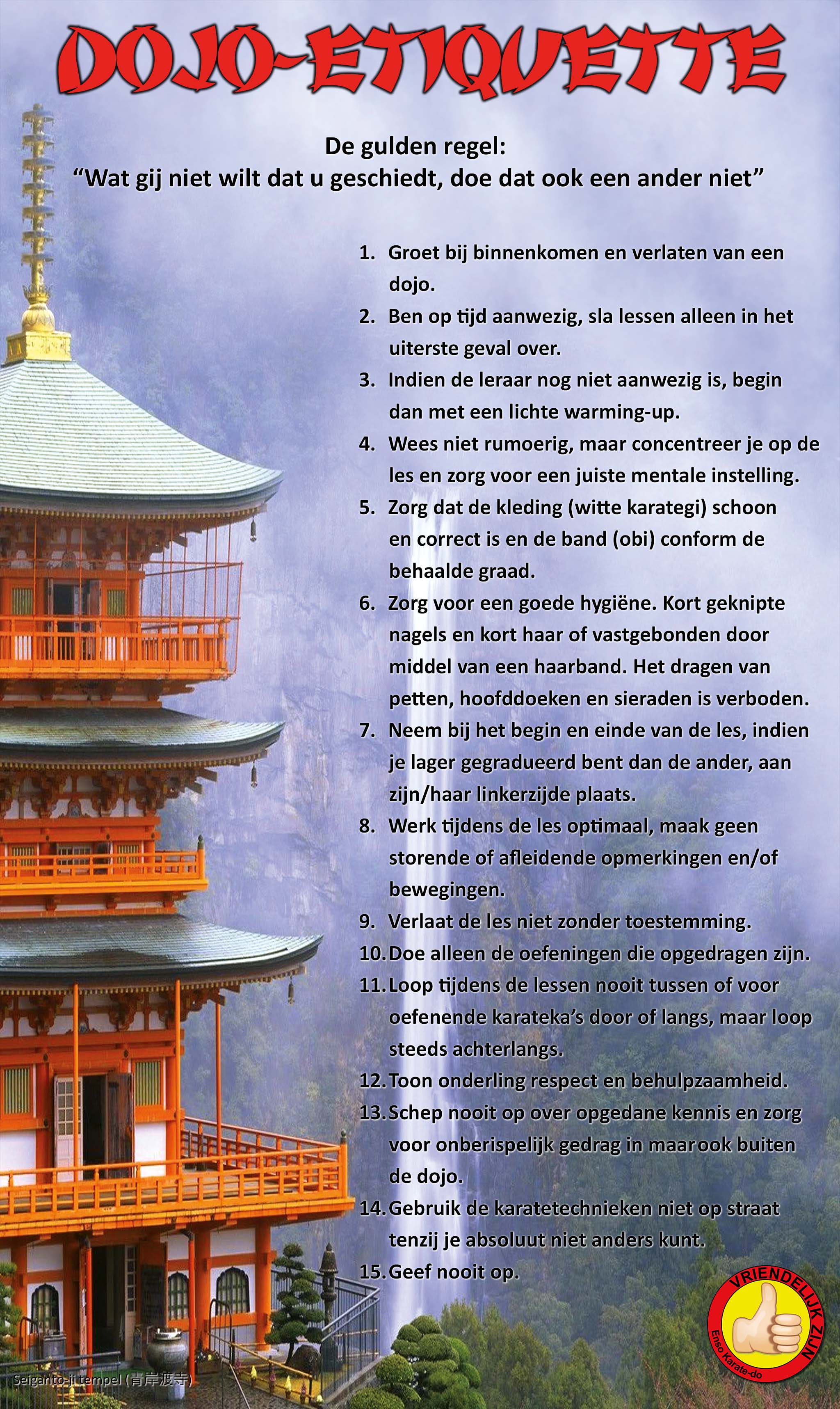 dojo-etiquette, waarin gedrags- en leefregels zijn
